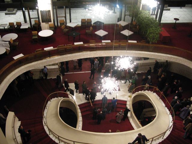 Zwei Freunde kamen zu spät, sie hatten sich 15 Dollar-Tickets in der letzten Reihe des obersten Ranges gesichert. Als sie zum zweiten Akt eingelassen wurden, saßen sie in einer Loge, auf diesen Tickets stand ein mittlerer dreistelliger Betrag. Dem Inhaber der Karten hatte diese Art des „modern staging“ nicht im Mindesten zugesagt und er gab sie gern dem jungen Paar. Wäre er bis zum Ende geblieben, er hätte wohl auf gleiche Weise „Bravough“ gebrüllt, wie der Mann schräg links hinter meinem Ohr. Der Enthusiasmus hält genau einen Vorhang. Dann ruft wohl noch das Operadinner – immerhin dafür ist das frühe Ende gegen 21.40 Uhr hervorragend geeignet. Der rote Samt des Foyers schenkt Wärme, die sich verstärkt, wenn man sie mit der Erinnerung an den Klangteppich in den Church Street überblendet. Auch wir haben noch gefeiert bis halb vier in der Nacht. (Danke Lexi, Hanna, David, Alex, Marc, Jo!)